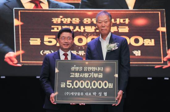 ¹Ú¼ºÇù (ÁÖ)¼¼¾ç¹°·ù ´ëÇ¥ÀÌ»ç´Â ºÎ»ê¿¡ °ÅÁÖÇϰí ÀÖ´Â °ñ¾àµ¿ Ãâ½Å ±â¾÷°¡À̸ç 2021³â ÀÚ¶û½º·¯¿î ±¤¾çÀλó ¼ö»óÀÚ·Î Á¦29ȸ ±¤¾ç½Ã¹ÎÀÇ ³¯À» ÃàÇÏÇØÁÖ±â À§ÇØ °íÇâ¿¡ ¹æ¹®ÇØ ¿¬°£ ÃÖ°í ±âºÎ±Ý¾×ÀÎ 500¸¸¿øÀÇ °íÇâ»ç¶û±âºÎ±ÝÀ» ±âŹÇÏ¸ç °íÇâ»ç¶û ¸¶À½À» Àü´ÞÇß´Ù.