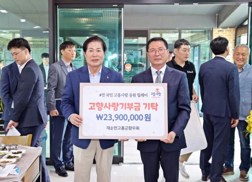 ±º¿¡ µû¸£¸é Àç¼øÃµ°íÈﱺÇâ¿ìȸ´Â Áö³ 14ÀÏ °íÇâ¹æ¹® Çà»ç ½Ã °íÇâ ¹ßÀüÀ» ÀÀ¿øÇϴ ȸ¿øµéÀÇ ¶æÀ» ¸ð¾Æ °íÇâ»ç¶û±âºÎ±Ý 2õ3¹é9½Ê¸¸ ¿øÀ» °íÈﱺ¿¡ Àü´ÞÇß´Ù.
