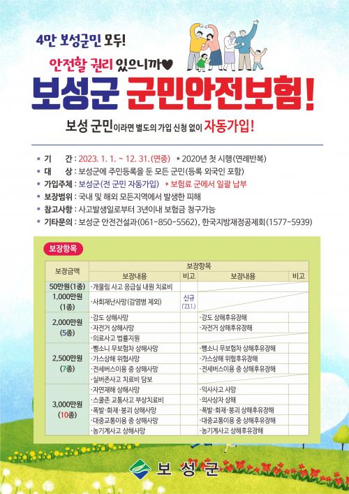 º¸¼º±ºÀº 2020³â ±º¹Î¾ÈÀüº¸Çè Á¦µµ¸¦ µµÀÔÇßÀ¸¸ç, 2023³â ÇöÀç±îÁö 4³â°£ ±º¹Î¾ÈÀüº¸ÇèÀ» ÅëÇØ ÃÑ 23°Ç 2¾ï 8õ 207¸¸ ¿øÀÌ Áö±ÞµÆ´Ù. Áö±Þ °Ç¼ö´Â ³ó±â°è»ç°í 19°Ç, ÀÍ»ç »ç°í 2°Ç, ÈÀç »ç°í 1°Ç, °³¹°¸² »ç°í 1°ÇÀÌ´Ù.