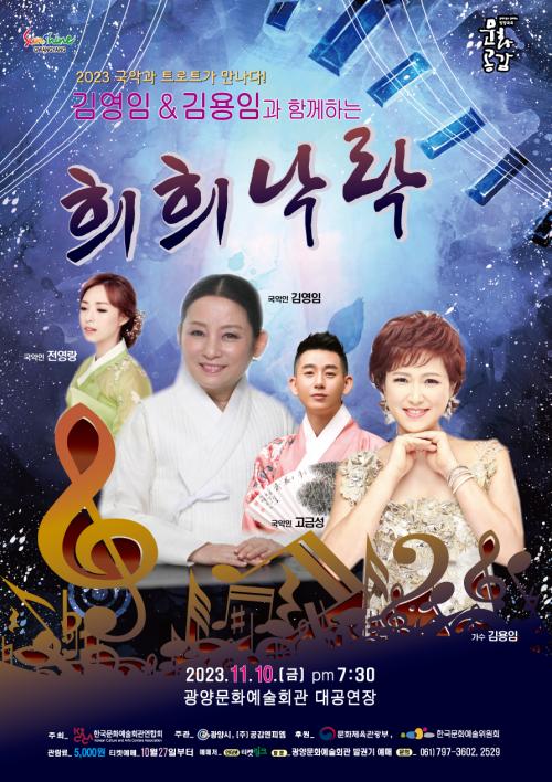 À̹ø °ø¿¬Àº Çѱ¹¹®È¿¹¼úȸ°ü¿¬ÇÕȸ ÁÖÃÖ, ±¤¾ç½Ã ÁÖ°ü, ¹®ÈüÀ°°ü±¤ºÎ¿Í Çѱ¹¹®È¿¹¼úÀ§¿øÈ¸°¡ ÈÄ¿øÇÏ´Â ¡¸2023³â ¹®¿¹È¸°ü°ú ÇÔ²²ÇÏ´Â ¹æ¹æ°î°î ¹®È°ø°¨»ç¾÷¡¹°ø¸ð·Î ¼±Á¤µÈ ¹Î°£¿¹¼ú´Üü ¿ì¼ö°ø¿¬ ÇÁ·Î±×·¥À¸·Î, ±¹¾Ç°ú Æ®·ÎÆ®ÀÇ °æ°è¸¦ Èï°ã°Ô ³Ñ³ªµé¸ç °ü¶÷ÇÒ ¼ö ÀÖ°Ô ÇÏ°í ½Ã¹Îµé¿¡°Ô ´Ùä·Î¿î ¹®È¿¹¼ú°ø¿¬ üÇèÀ» Á¦°øÇϱâ À§ÇØ ¸¶·ÃµÆ´Ù.