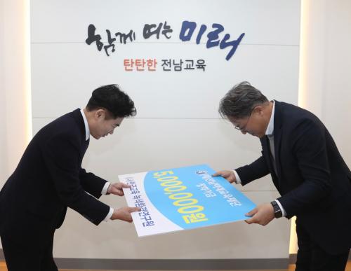À̱æÈÆ Àü³²¹Ì·¡±³À°Àç´Ü ¿øÀåÀº ¡°Àü³²±³À°¿¡ °ü½ÉÀ» °®°í ÀåÇбÝÀ» ±âºÎÇØÁֽŠÇѱ¹±³À°³ì»öȯ°æ¿¬±¸¿ø¿¡ Áø½ÉÀ¸·Î °¨»çµå¸°´Ù.¡±¸é¼ ¡°±âºÎÀÚÀÇ ¶æ¿¡ µû¶ó Àü³² ¹Ì·¡ÀÎÀç À°¼º°ú ÇлýµéÀÇ ²ÞÀ» Ű¿ì´Â µ¥¿¡ ¼ÒÁßÈ÷ »ç¿ëÇϰڴÙ.¡±°í ¸»Çß´Ù.