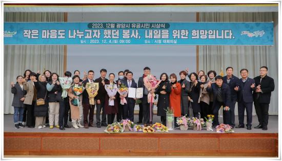 Á¤ÀÎÈ ±¤¾ç½ÃÀåÀº ¡°ÀÚ¿øºÀ»çÀÚÀÇ µû¶æÇÑ ¸¶À½ÀÌ ¸ð¿© ±¤¾ç½ÃÀÇ ¹Ì·¡¸¦ ¹àÈù´Ù¡±¸ç ¡°Áö¿ª»çȸ ¹ßÀüÀ» À§ÇØ Èû½á ÁÖ½Ã°í ²ÙÁØÇÑ ºÀ»çȰµ¿À¸·Î ¼±ÇÑ ¿µÇâ·ÂÀ» ÀüÆÄÇØ ÁֽŠ¿©±â °è½Å ¸ðµç ºÐµé²² °¨»çµå¸°´Ù¡±°í ¸»Çß´Ù.