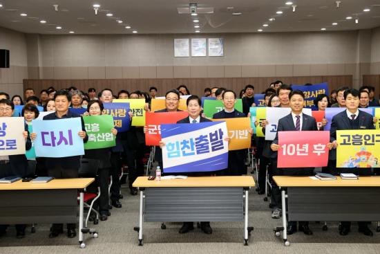 À̾î, ¡°°©Áø³â »õÇØ¿¡µµ ±º¹Î Çູ°ú °íÈïÀÇ º¯È ¹ßÀü¸¸À» »ý°¢ÇÏ¸ç ±º¹Î°ú °øÁ÷ÀÚÀÇ ÁöÇý¸¦ Çϳª·Î ¸ð¾Æ, °íÈïÀÇ ÈûÂù µµ¾à°ú Èñ¸ÁÂù ¹Ì·¡¸¦ À§ÇØ ¿°ú ¼ºÀ» ´ÙÇÒ °Í¡±À̶ó°í »õÇØ Æ÷ºÎ¸¦ ¹àÇû´Ù.