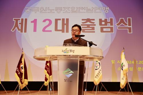 À̳¯ Ãâ¹ü½Ä¿¡´Â ´ëÇѹα¹°ø¹«¿ø³ëµ¿Á¶ÇÕÃÑ¿¬¸Í ¾ÈÁ¤¼· ¼ö¼®ºÎÀ§¿øÀå, Àü±¹½Ã±º±¸°ø¹«¿ø³ëµ¿Á¶ÇÕ¿¬¸Í °øÁÖ¼® À§¿øÀåÀ» ºñ·ÔÇÑ Àü±¹ ´ÜÀ§³ëÁ¶ À§¿øÀå, Àü³²¿¬¸Í ´ëÀÇ¿ø µî 400¿© ¸íÀÌ Âü¼®Çß´Ù.