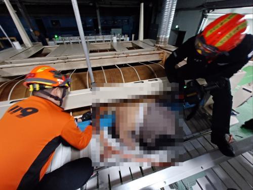 ¿©¼ö¼Ò¹æ¼ 119±¸Á¶´ë¿Í ±¸±Þ´ë¿øÀÌ ÇöÀå¿¡ µµÂøÇѹÙ, ±¸Á¶´ë»óÀÚ A¾¾´Â ·Ñ·¯ ±â°è¿¡ ÆÈ²ÞÄ¡±îÁö ³¢¿© °íÅëÀ» È£¼ÒÇϰí ÀÖ´Â »óȲÀ̾ú´Ù.