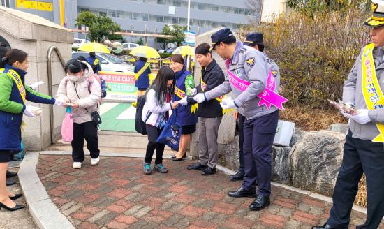 °³Çб⸦ ¸Â¾Æ ±³Åë»ç°í․ Çб³Æø·Â µî ¾î¸°À̵éÀÇ ¾ÈÀüÇÑ µî±·±æ Á¶¼ºÀ» À§ÇÏ¿© 7ÀÏ ±¤¾ç Áßµ¿¿¡ ÀÖ´Â ÁßÁø ÃʵîÇб³ ¾Õ¿¡¼ ±¤¾ç³ì»ö¾î¸Ó´Ïȸ¡¤ÁßÁøÃʵîÇб³¿Í ÇÕµ¿ Ä·ÆäÀÎÀ» Àü°³Çß´Ù.