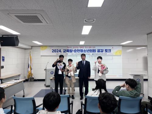 Ç㵿±Õ ±³À°ÀåÀº ¡°Ã»¼Ò³âÀÇȸ ´ëÇ¥´Â °¢ Çб³ û¼Ò³âµéÀÇ ¸ñ¼Ò¸®¸¦ ´ëº¯Çϰí, û¼Ò³âµéÀÇ Àǰ߰ú À̽´¸¦ Á¶Á÷Çϰí Á¦½ÃÇÏ´Â ¿ªÇÒÀ» ÇØ¾ß ÇÑ´Ù¡±°í ¸»ÇÏ¸é¼ ¡°¾ÕÀ¸·Î ¼øÃµ±³À°Áö¿øÃ»°ú ÇÔ²²ÇÏ´Â ¼øÃµÃ»¼Ò³âÀÇȸ°¡ ¼øÃµ û¼Ò³âÀ» À§ÇÑ ´Ù¾çÇÑ Á¤Ã¥À» ¹ß±¼, ½ÇÇàÇÒ ¼ö ÀÖ´Â ¹Ø°Å¸§ÀÌ µÇ¾úÀ¸¸é ÇÑ´Ù¡±¶ó¸ç û¼Ò³âÀÇȸ ´ëÇ¥ ÇлýµéÀ» °Ý·ÁÇÏ¿´´Ù.