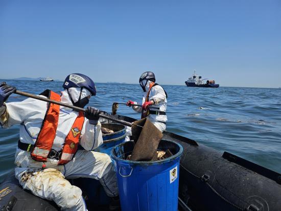 ½Å°í¸¦ Á¢¼öÇÑ ¿©¼öÇØ°æÀº °æºñÇÔÁ¤°ú ¹æÁ¦Á¤ 9ô, À¯°ü±â°ü ¹æÁ¦¼± 2ô, ¹Î°£ ¹æÁ¦¼± 1ô µî ÃÑ 12ôÀ» µ¿¿øÇØ ÇØ»ó¿¡ À¯ÃâµÈ °ËÀº»ö ¹× °¥»öÀÇ ±â¸§¶ì(±æÀÌ 300m, Æø 300m)¸¦ ¹ß°ßÇÏ°í ±ä±Þ ¹æÁ¦ ÀÛ¾÷¿¡ ³ª¼ 10½Ã°£ ¸¸¿¡ ¸¶¹«¸®µÆ´Ù.