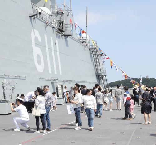 À̾î ÇØ±º Á¦3ÇÔ´ë ±¤ÁÖÇÔ°ú ÇØ±ºÀÛÀü»ç·ÉºÎ µ¶µµÇÔÀÌ Â÷·Ê·Î ¿¢½ºÆ÷Ç×À» ã¾Ò´Ù. ƯÈ÷ 6¿ù 1ÀÏ ±× À§¿ëÀ» µå·¯³½ µ¶µµÇÔÀº 1¸¸ 4,500t±ÞÀ¸·Î ±× ±æÀ̸¸µµ 199m¿¡ ´ÞÇØ ¹Ú¶÷ȸÀåÀ» ãÀº °ü¶÷°´µé¿¡°Ô Å« º¼°Å¸®¸¦ ¼±»çÇϰí ÀÖ´Ù. °ü¶÷°´µéÀº ¾Æ½Ã¾Æ ÃÖ´ë »ó·úÇÔÀÎ µ¶µµÇÔ¿¡ ¿Ã¶ó, ´ëÇѹα¹ ¿µÇظ¦ Áö۰í ÀÖ´Â ÇØ±ºµéÀÇ ¹Ù´Ù »ýȰ, ÇÔÁ¤ µî ÇÙ½ÉÀü·ÂµéÀÇ °ÀÎÇÑ È°µ¿»ó µîÀ» »ìÆìº»´Ù.
