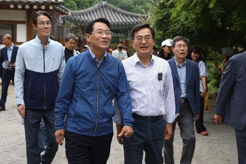 °Áø¿ø °Áø±º¼ö¿Í ±èµ¿¿¬ °æ±âÁö»ç°¡ 10ÀÏ ¿ÀÀü °Áø±º µµ¾Ï¸é ¸¸´ö»ê ÀÚ¶ô ¹é·Ã»ç¿¡¼ ´Ù»êÃÊ´çÀ¸·Î ³Ñ¾î°¡´Â ¡®»ç»öÀÇ ±æ¡¯À» ÇÔ²² °ÉÀ¸¸ç »ó»ýÇÁ·ÎÁ§Æ® °¡µ¿ µî ±³·ù¿Í Çù·ÂÀÇ ±âȸ¸¦ È®´ëÇØ ³ª°¡ÀÚ°í ´ÙÁüÇß´Ù.