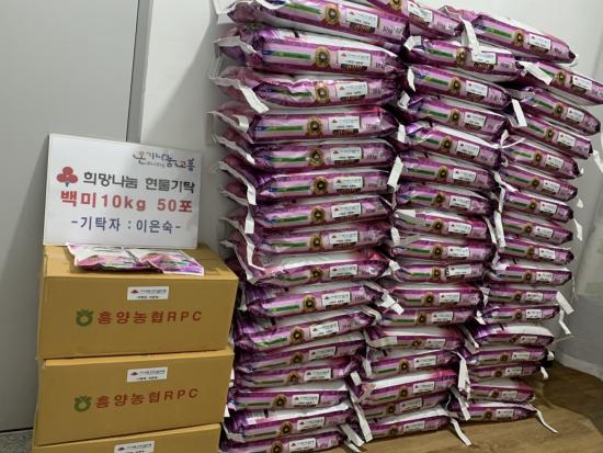 À̾î, Áö³ 18ÀÏ ÀÌÀº¼÷ ¾¾°¡ ¹é¹Ì 10§¸ 50Æ÷, Çö¹Ì 500g 100Æ÷(150¸¸ ¿ø »ó´ç)¸¦ ±âŹÇß´Ù. ÀÌÀº¼÷ ¾¾´Â °íÇâ»ç¶û±âºÎ±ÝÀ¸·Î °íÈﱺ¿¡ 500¸¸ ¿øÀ» ±âºÎÇϰí, ´ä·ÊǰÀ¸·Î ¹é¹Ì¸¦ ¹Þ¾Æ À̸¦ ´Ù½Ã ±Ý»ê¸é¿¡ ÁöÁ¤ ±âŹÇÏ¸ç µû¶æÇÑ ÀÌ¿ô »ç¶ûÀ» ½ÇõÇß´Ù.