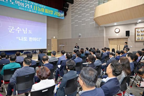 ¾Æ¿ï·¯, °ø¿µ¹Î ±º¼ö´Â ¡°Áö³ 2³â°£ÀÇ ¼º°ú´Â ±º¼ö È¥ÀÚ°¡ ¾Æ´Ñ 1,400¿© °øÁ÷ÀÚµéÀÌ ÇÔ²²ÇØ ÁÖ¾ú±â¿¡ °¡´ÉÇß´Ù¡±¸ç ¡°¾ÕÀ¸·ÎÀÇ 2³âµµ ±º¹Î ÅëÇÕÀ» ¹ÙÅÁÀ¸·Î ¿ÀÁ÷ ±º¹Î, °íÈïÀÇ º¯È ¹ßÀüÀ» À§ÇØ ÇÔ²² ÃÖ¼±À» ´ÙÇØ Áֱ⠹ٶõ´Ù¡±¸ç °Ý·Á¿Í ´çºÎÀÇ ¸»À» ÀüÇß´Ù.