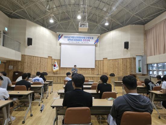 ¾Æ¿ï·¯, Á¦¾Ï»ê »ê¸²È޾硤ġÀ¯½Ã¼³ °ü¸®ÀÚ¿Í ´ëÇлý ¾Æ¸£¹ÙÀÌÆ®»ý 60¿© ¸íÀ» ´ë»óÀ¸·Î Áß´ëÀçÇØÃ³¹ú¹ý, ¤¶óÀÎ, °õ½ä¸Å µî ¸ðÇè½Ã¼³¿¡ ´ëÇÑ ¾ÈÀü Àåºñ Á¡°Ë ¹æ¹ý, ±¸Á¶Àåºñ ¿Ã¹Ù¸¥ »ç¿ë¹ý, ½ÉÆó¼Ò»ý¼ú ¹× ÀÀ±ÞȯÀÚ ¹ß»ý ½Ã ´ëó¿ä·É µî¿¡ ´ëÇØ ÁýÇÕ ±³À° ¹× ÇöÀå ±³À°À» ½Ç½ÃÇß´Ù.
