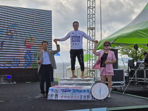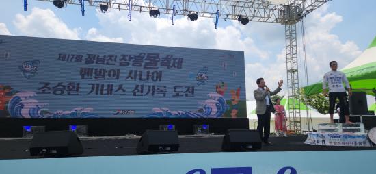 Á¤ÀÎÈ ±¤¾ç½ÃÀåÀº ¡°±¤¾ç½Ã È«º¸´ë»çÀÌÀÚ ±¹Á¦ ȯ°æ¿îµ¿°¡ÀÎ ¸Ç¹ßÀÇ »ç³ªÀÌ Á¶½Âȯ ¾¾°¡ ±×ÀÇ 50¹øÂ° µµÀü¿¡¼ 5½Ã°£ ´ë±â·ÏÀ» ¼¼¿î °ÍÀ» ÀÚ¶û½º·´°Ô ¿©±ä´Ù¡±¶ó¸ç ÃàÇÏ Àλ縦 ÀüÇß´Ù.