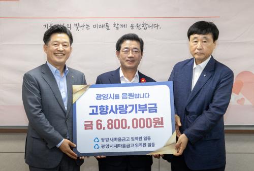 Á¤¿µ±â ±¤¾ç»õ¸¶À»±Ý°í ÀÌ»çÀå°ú ±èÀç¼÷ ±¤¾ç½Ã»õ¸¶À»±Ý°í ÀÌ»çÀåÀº ¡°Áö¿ª¿¡ ±â¹ÝÀ» µÐ ¿ì¸® Áö¿ª ´ëÇ¥ ±ÝÀ¶±â°ü Áß ÇϳªÀÎ ±¤¾ç»õ¸¶À»±Ý°í¿Í ±¤¾ç½Ã»õ¸¶À»±Ý°í°¡ Áö¿ª »ó»ý¹ßÀü°ú Áö¿ª°æÁ¦ Ȱ¼ºÈ¸¦ ¸ñÇ¥·Î ÇÏ´Â °íÇâ»ç¶û±âºÎÁ¦¿¡ ÇÔ²²ÇÒ ¼ö ÀÖ¾î ±â»Ú´Ù¡±¶ó¸ç ¡°¸¹Àº Á÷¿øÀÌ °íÇâ»ç¶û±âºÎÁ¦ÀÇ ÃëÁö¿¡ µ¿°¨ÇÏ¿© Àû±ØÀûÀ¸·Î µ¿ÂüÇØ Áá´Ù¡±¶ó°í ¼Ò°¨À» ¹àÇû´Ù.