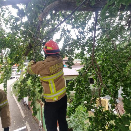 Ã⵿´ë¿øµéÀº ÇöÀå¿¡ ÀθíÇÇÇØ µî ´Ù¸¥ ÇÇÇØ°¡ ¾ø´Ù´Â °ÍÀ» È®ÀÎÇϰí, 30¿© ºÐ¿¡ °ÉÃÄ Åé µîÀÇ Àåºñ¸¦ Ȱµ¿ÇÏ¿© ³ª¹«¸¦ Àý´ÜÇÏ°í ¾ÈÀüÁ¶Ä¡¸¦ ¿Ï·áÇÏ¿´´Ù.