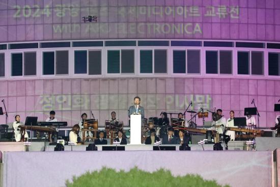 Á¤ÀÎÈ ±¤¾ç½ÃÀåÀº À̳¯ ´ëȸ»ç¿¡¼ ¡°À̹ø ¹Ìµð¾î¾ÆÆ® ±³·ùÀü °³ÃÖ´Â ¹®È¿¹¼ú»ê¾÷ À°¼ºÀ» À§ÇÑ Ãʼ®À» ¸¶·ÃÇÑ °ÍÀÌ´Ù¡±¶ó¸ç ¡°±¤¾ç½Ã°¡ ´ëÇѹα¹ ¹Ìµð¾î¾ÆÆ®ÀÇ ¹Ì·¡¸¦ ¿¾î°¡´Â Áö¼Ó°¡´ÉÇÑ ±Û·Î¹ú ¹®È¿¹¼ú µµ½Ã·Î ¹ßµ¸¿òÇϱâ À§ÇØ ÃÖ¼±À» ´ÙÇϰڴ١±¶ó°í ¸»Çß´Ù.