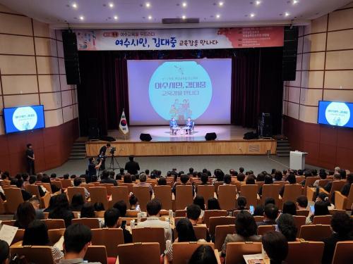 À̳¯ ¿¡µàÄܼƮ´Â ¿©¼ö±³À° ±¸¼º¿øµéÀÌ Áú¹®ÇÏ°í ±è´ëÁß ±³À°°¨ÀÌ ´äº¯ÇÏ´Â Çü½ÄÀ¸·Î ÁøÇàµÇ¾úÀ¸¸ç ±¸µµ½É±Ç º¹ÇÕ¹®È°ø°£ ºÎÀç ÇØ°á ¹æ¾È, ¿©¼ö½Ã ½Åµµ½É ÁßÇб³ ½Å¡¤À̼³ °èȹ, Áö¿ªÀû Ư¼ºÀ» ¹Ý¿µÇÑ ±³À° ÇÁ·Î±×·¥ °èȹ, Àü³²Çü ¹Ì·¡±³À°°ú AI »çȸ ÀûÀÀÀ» À§ÇÑ ±³À° ¹æÇâ µî ¿©¼ö±³À°ÀÇ Çö¾È°úÁ¦»Ó¸¸ ¾Æ´Ï¶ó ³ª¾Æ°¡ Àü³²±³À°ÀÇ ¹Ì·¡±îÁö Áú¹®ÇÏ¿© ±³À° ÇöÀå°ú Áö¿ª»çȸÀÇ ´Ù¾çÇÑ ¸ñ¼Ò¸®¸¦ Á÷Á¢ µè°í, ±³À°°¨ÀÇ ±³À° ¹æÇâÀ» ÇÔ²² °øÀ¯ÇÏ´Â ½Ã°£À» °¡Á³´Ù.
