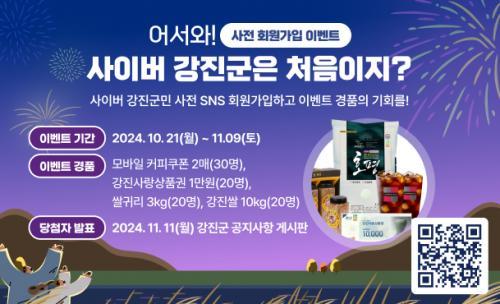 À̹ø »çÀü ȸ¿ø°¡ÀÔÀº °Áø±ºÃ» ȨÆäÀÌÁö¿¡¼ ³×À̹ö¿Í īī¿ÀÀÇ SNS °£Æí ·Î±×ÀÎ ¹æ½ÄÀ» Ȱ¿ëÇØ ´©±¸³ª ½±°Ô Âü¿© °¡´ÉÇÏ´Ù. ƯÈ÷, Âü¿©ÀÚ Áß Ãß÷À» ÅëÇØ ¸ð¹ÙÀÏ Ä¿ÇÇ ÄíÆù°ú °Áø¿¡¼ »ý»êµÈ ½Ò, ±Í¸® µîÀÇ Æ¯º°ÇÑ Áö¿ª ³ó»ê¹°ÀÌ °æÇ°À¸·Î ÁõÁ¤µÇ¾î °Áø±ºÀÇ Áö¿ª Ư»ê¹°À» ¾Ë¸®´Â µ¿½Ã¿¡ Âü¿©Àڵ鿡°Ô dzºÎÇÑ ÇýÅÃÀ» Á¦°øÇÑ´Ù.