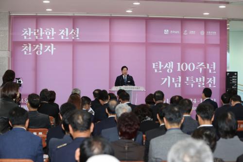 °ø¿µ¹Î ±º¼ö´Â ¡°Ãµ°æÀÚ È¹éÀº Çѱ¹ Çö´ë¹Ì¼ú»çÀÇ Å« º°·Î, õ ȹéÀÇ ÀÛǰ¿¡¼ ¹¯¾î³ª´Â µ¶Ã¢ÀûÀÎ »öä¿Í °·ÄÇÑ °¨¼ºÀ¸·Î ¸¹Àº »ç¶÷µéÀÇ ¸¶À½À» »ç·ÎÀâ¾Ò´Ù¡±¸ç ¡°À̹ø Àü½Ã¸¦ ÅëÇØ ¸¹Àº ºÐµéÀÌ Ãµ°æÀÚ È¹éÀÇ ¿¹¼úÀû ¼¼°è¸¦ ÇÔ²² ´À³¢°í õ ȹéÀÇ ÀÛǰÀÌ ÁÖ´Â ±íÀº °¨µ¿À» °æÇèÇÏ½Ã±æ ¹Ù¶õ´Ù¡±°í ÀüÇß´Ù.