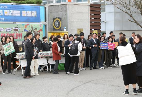 ÇöÀå¿¡´Â ·ùÁ¦µ¿ °íÈﱺÀÇȸ ÀÇÀå, ±ÇÇü¼± °íÈï±³À°Àå, °øÁ¤¿ø °íÈï°æÂû¼Àå µîµµ ÇÔ²² ³ª¿Í ÀÀ¿ø¿¡ ÈûÀ» º¸Åɰí, ¼ö´É ´ë¹ÚÀ» ±â¿øÇÏ´Â ÈĹèµéÀÇ ÀÀ¿ø°ú ÁغñÇÑ Â÷¿Í ÇÖÆÑÀ» °Ç³×¸ç ±äÀåÇÑ ¸¶À½À» ³ì¿©ÁÖ´Â ±³À°Ã» °ü°èÀÚ¿Í Çкθð´ÔµéÀÇ µû¶æÇÑ ¼Õ±æÀº ÈÆÈÆÇÑ ºÐÀ§±â¸¦ ´õ¿í °íÁ¶½ÃÄ×´Ù.