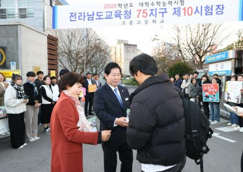 °íÈﱺ¿¡¼´Â ¼öÇè»ýµéÀÌ ½ÃÇè¿¡ ÁýÁßÇÒ ¼ö ÀÖµµ·Ï ´çÀÏ ½ÃÇèÀå ÁÖº¯ °ÇÃà°ø»ç, ¸¶À» ¹æ¼Û, °¡µÎ ¹æ¼Û µîÀ» ÁßÁöÇϵµ·Ï È«º¸Çϰí, ¿µ¾î µè±â ½ÃÇè½Ã°£ÀÎ ¿ÀÈÄ 1½Ã 10ºÐºÎÅÍ 35ºÐ±îÁö 25ºÐ°£ °íÈï°íµîÇб³ Àα٠µµ·Î ±³ÅëÀ» Àü¸é ÅëÁ¦ÇÏ¿© ¾ÈÁ¤ÀûÀ¸·Î ¼ö´ÉÀÌ ÁøÇàµÉ ¼ö ÀÖµµ·Ï Á¶Ä¡Çß´Ù.