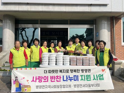 º´¿µ¸é »õ¸¶À»ºÎ³àȸ´Â Áö³ 10¿ù¿¡µµ ÇÑÂ÷·Ê »ç¶ûÀÇ ¹ÝÂù ³ª´©¹Ì »ç¾÷À» ÃßÁøÇßÀ¸¸ç, ±èÀå±èÄ¡¿Í Á¦À°ººÀ½, ¾î¹¬ººÀ½ µîÀ» ÁغñÇØ º´¿µ¸éÀÇ ¾î·Á¿î ÀÌ¿ô ÃÑ 50°¡±¸¿¡ µû¶æÇÑ ¸¶À½À» ÀüÇß´Ù.