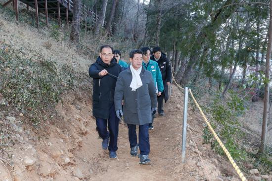 Á¤ ½ÃÀåÀÌ À̳¯ µÎ ¹øÂ°·Î ãÀº °÷Àº Áö³ÇØ 12¿ù ÁذøµÈ ±¤¾çÀ¾ ¼»ê ¸Ç¹ß°È±â±æ ÇöÀåÀ¸·Î, À̰÷Àº ¼»ê µ¥Å©±æ°ú ¼Ãµ¿îµ¿ÀåÀ» ¿¬°áÇÏ´Â »êÃ¥·Î·Î »ç¿ëµÇ°í ÀÖ´Ù. Á÷Á¢ ±æÀ» °ÉÀ¸¸ç ½Ã¼³¹°À» Á¡°ËÇÑ Á¤ ½ÃÀåÀº ½Ã¹Î ÆíÀǸ¦ À§ÇØ ¼öµµ½Ã¼³ ¾È³»ÆÇÀ» ¼³Ä¡ÇÏ°í ¹Ù´Ú µ¹Ãâ¹° Á¦°Å ¹× »ç¸é Á¤ºñ µî ȯ°æ °³¼±À» öÀúÈ÷ ÁøÇàÇÒ °ÍÀ» Áö½ÃÇß´Ù.