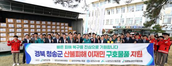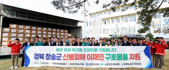 °Áø±ºÀÌ °æºÏ û¼Û Áö¿ªÀÇ ´ëÇü »êºÒ·Î ÇÇÇØ¸¦ ÀÔÀº ÀÌÀç¹ÎµéÀ» µ½±â À§ÇØ ÀÚ¹ßÀûÀÎ ±âºÎ ¿îµ¿À» Àü°³Çϰí Á¤¼ºÀ¸·Î ¸ð±ÝµÈ ±âºÎ±Ý°ú ±¸È£¹°Ç°À» û¼Û±º Á¢¼öóÀΠû¼Û±¹¹ÎüÀ°¼¾ÅÍ ÀçÇØ±¸È£ÆÀ¿¡ Á÷Á¢ Àü´ÞÇß´Ù.