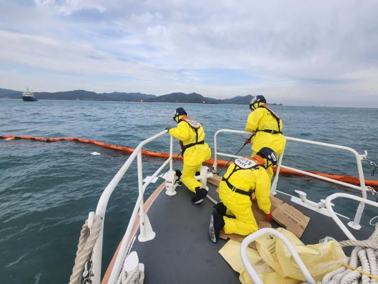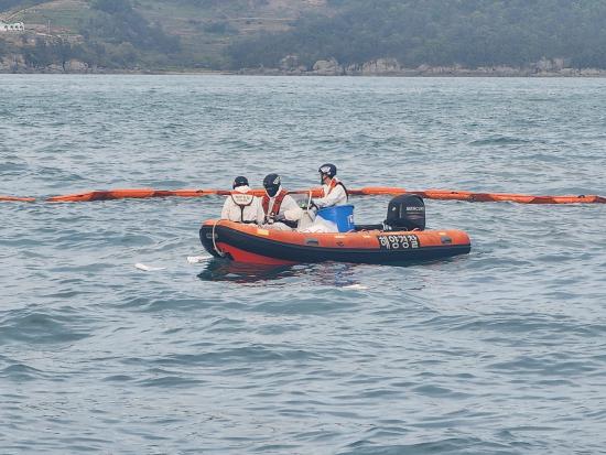 ÇØ°æÀº ¾à 120£í ±æÀÌÀÇ ¿ÀÀÏÆæ½º¸¦ ¼³Ä¡Çϰí À¯ÈíÂøÀç µîÀ¸·Î ½Å¼ÓÇÑ ÀÜ·ù ±â¸§ ¼ö°Å ÀÛ¾÷À» ¹ú¿© ÇØ»ó¿¡ À¯ÃâµÈ °ËÀº»ö ¹× °¥»öÀÇ ±â¸§¶ì(±æÀÌ 50m, Æø 50m)¸¦ ¾à 2½Ã°£¿© ¸¸¿¡ ±ä±Þ¹æÁ¦ ¿Ï·áÇß´Ù.
