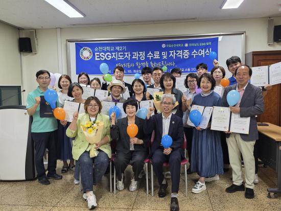 ÇÑÆí, °°Àº ³¯ ¼øÃµ´ëÇб³¿¡¼´Â 25¸íÀÇ ESGÁöµµ»ç 2±â ±³À° ¼ö·á ¹× ÀÚ°ÝÁõ ¼ö¿©½ÄÀÌ ÇÔ²² ÁøÇàµÇ¾î ESG Àü¹® Àη ¾ç¼ºÀ» À§ÇÑ ¶Ç ÇϳªÀÇ Áß¿äÇÑ ÀÌÁ¤Ç¥¸¦ ¼¼¿ü´Ù.