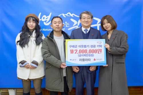 À̹ø ±âŹÀº Áö¿ª»çȸ¿¡ ´ëÇÑ ³ª´®À» ²ÙÁØÈ÷ ½ÇÃµÇØ ¿Â ¶óÇöóŸÀÇ Áö¼ÓÀûÀÎ »çȸ°øÇå Ȱµ¿ÀÇ ÀÏȯÀ¸·Î, ±âŹµÈ ¼º±ÝÀº Àü³²»çȸº¹Áö°øµ¿¸ð±Ýȸ¸¦ ÅëÇØ °æÁ¦Àû ¾î·Á¿òÀ» °Þ°í ÀÖ´Â °ü³» Àú¼Òµæ °¡Á¤°ú º¹Áö»ç°¢Áö´ë ÀÌ¿ô¿¡°Ô Àü´ÞµÉ ¿¹Á¤ÀÌ´Ù.