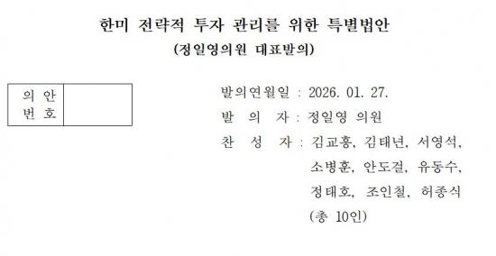 [½Åµ¿¾Æ¹æ¼Û ÀÎõ=À±¹Î½Ä±âÀÚ]27ÀÏ(È­), Á¤ÀÏ¿µ ±¹È¸ÀÇ¿ø(´õºÒ¾î¹ÎÁִ硤ÀÎõ¿¬¼öÀ»)Àº ÇÑ¹Ì °£ ´ë±Ô¸ð Àü·«Àû ÅõÀÚ¸¦ ü°èÀûÀ¸·Î °ü¸®¡¤°¨µ¶Çϱâ À§ÇÑ ¡¸ÇÑ¹Ì Àü·«Àû ÅõÀÚ °ü¸®¸¦ À§ÇÑ Æ¯º°¹ý¾È¡¹À» ´ëÇ¥ ¹ßÀÇÇß´Ù.