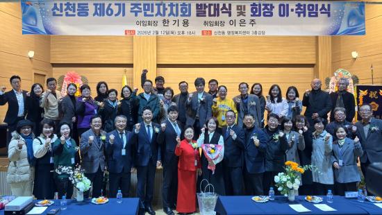 °°Àº ³¯, ½Åõµ¿ ÁÖ¹ÎÀÚġȸµµ ½Åõµ¿ ÇàÁ¤º¹Áö¼¾ÅÍ 3Ãþ °´ç¿¡¼ Á¦6±â ÁÖ¹ÎÀÚġȸ ȸÀå ÀÌÃëÀÓ½Ä ¹× ¹ß´ë½ÄÀ» °³ÃÖÇß´Ù.